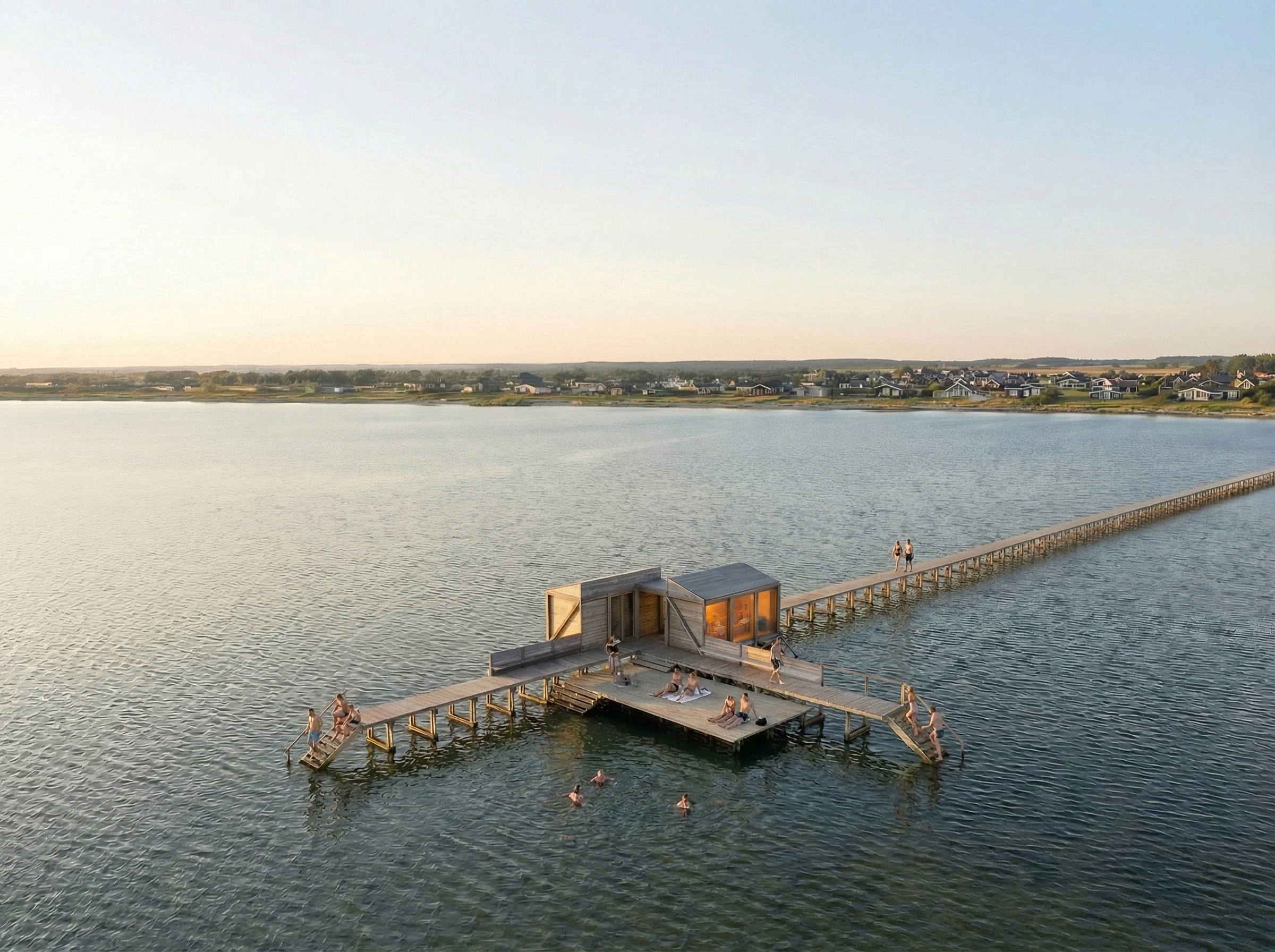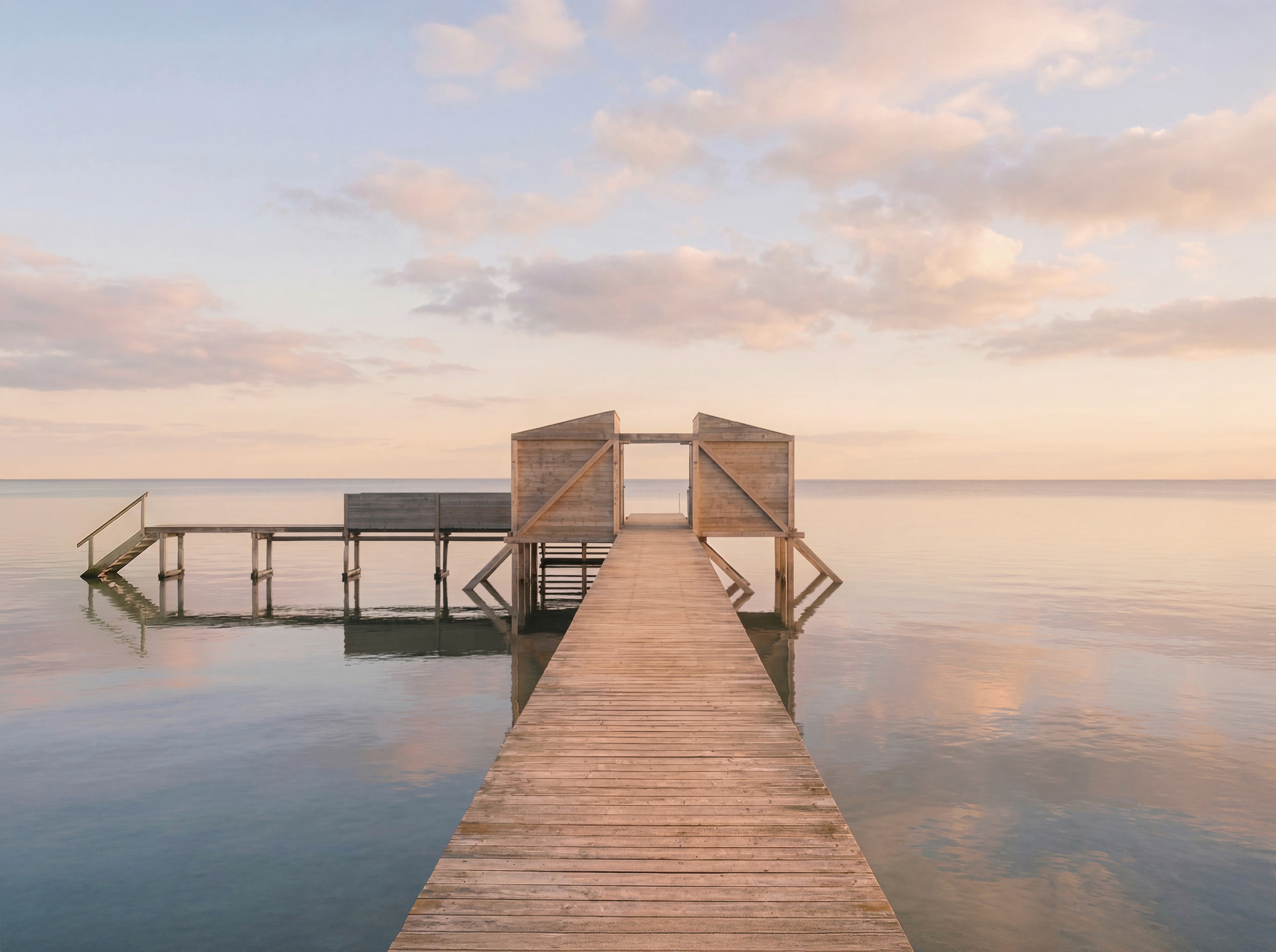 A new bathing pier and sauna reframe the edge between land and Øresund as a place for year-round ritual, recovery, and community. Extending from the shore as a simple timber structure, the project combines a linear pier, a generous bathing platform, and a compact sauna with open views to the horizon.