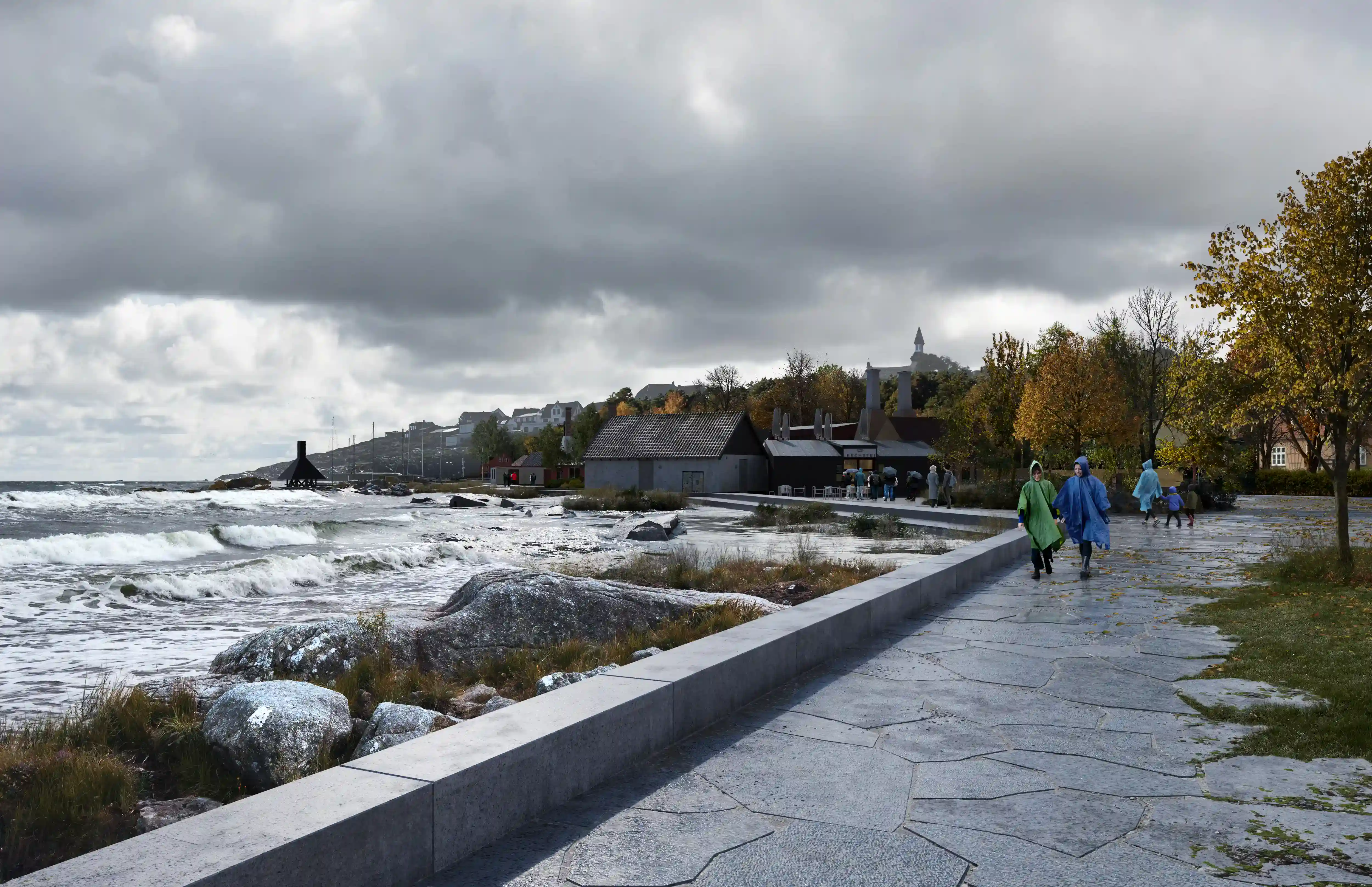 In Gudhjem, Bornholm, where severe flooding damaged homes and public spaces, MAST has designed a new public realm that weaves flood defences into a parkland setting. Nature-based wave breaks further protect the shore while creating a vibrant, living waterfront